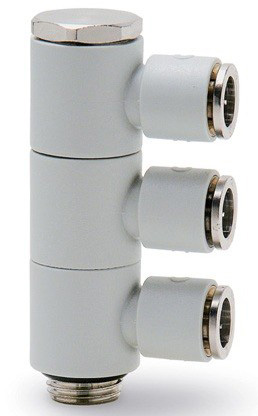 Форма фитинга: разветвитель с серьгой с нар. резьбой поворотный тройной • Подключение: G1/4-8 мм • Материал корпуса: полибутилентерефталат (PBT)