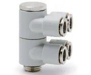 Форма фитинга: разветвитель с серьгой Y-образный с нар. резьбой поворотный двойной • Подключение: G1/8-4 мм • Материал корпуса: полибутилентерефталат (PBT)
