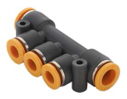 Форма фитинга: разветвитель T-образный • Подключение: 4 мм • Материал корпуса: полибутилентерефталат (PBT) • Цвет: оранжевый