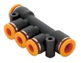 Форма фитинга: разветвитель T-образный • Подключение: 8-6 мм • Материал корпуса: полибутилентерефталат (PBT) • Цвет: оранжевый