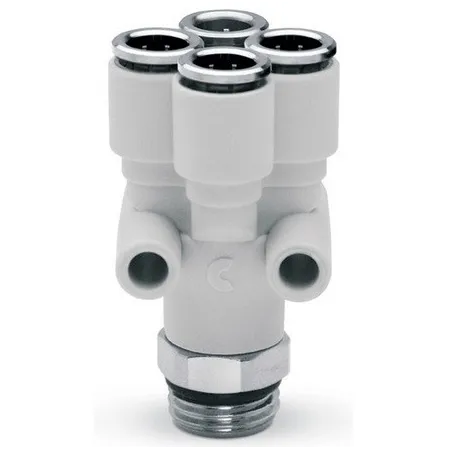 Форма фитинга: разветвитель Y-образный с нар. резьбой • Подключение: G1/8-4 мм • Материал корпуса: полибутилентерефталат (PBT)