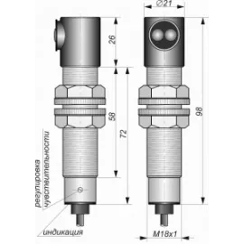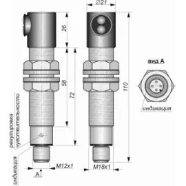Дискретный выходNPN Диапазон измерения6000 мм Крепежная резьбаM18x1 Корпуспластик ПроизводительСКБ Индукция