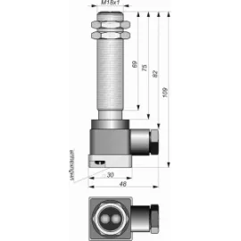 Дискретный выходNPN Диапазон измерения6000 мм Электрическое подключениеклеммы Крепежная резьбаM18x1 Корпуслатунь ПроизводительСКБ Индукция