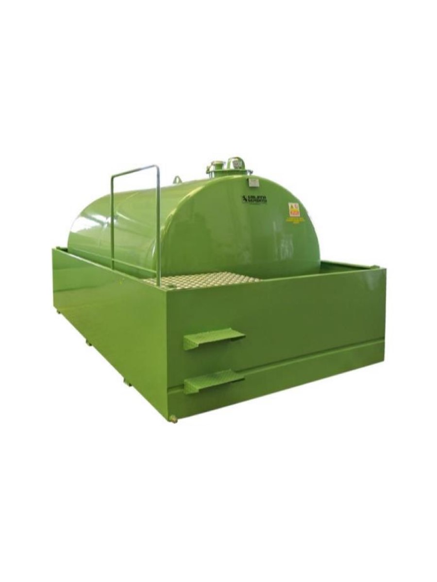 Горизонтальный цилиндрический резервуар для хранения дизельного топлива объемом 3000 л. Опирается на противооткатные ножки, имеет выпуклое дно. Резервуар сварен под флюсом, изготовлен из каландрированной листовой углеродистой стали S 235 JR в соответствии с стандартами UNI EN 10025, имеет антикоррозийное покрытие, и окрашен высококачественной зелёной краской. Испытан на герметичность.