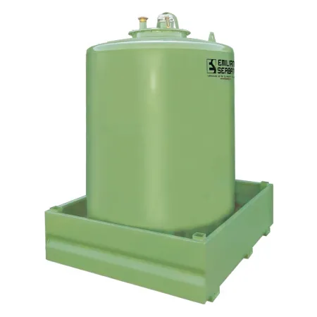 Установлен на поддон, способный вместить 50% объема резервуара, в случае пролива топлива.
