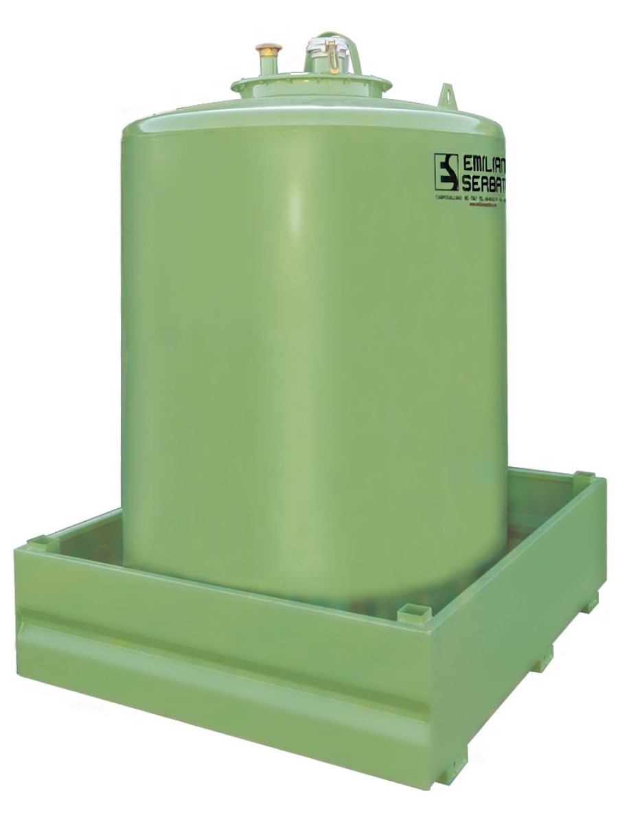 Вертикальный цилиндрический резервуар для хранения дизельного топлива объемом 5000 л. Опирается на противооткатные ножки, имеет выпуклое дно. Резервуар сварен под флюсом, изготовлен из каландрированной листовой углеродистой стали S 235 JR в соответствии с стандартами UNI EN 10025, имеет антикоррозийное покрытие, и окрашен высококачественной зелёной краской. Испытан на герметичность.
