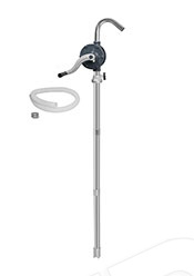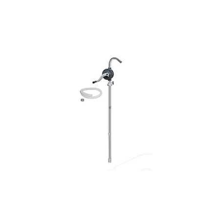 Роторный ручной насос для перекачки дизельного топлива, масла и других не агрессивных жидкостей, низкой вязкости из бочки 205 л. Произвдительность 0,3 л/ход. В комплекте: адаптер 2" BSP (M), всасывающая трубка - 1.040 мм и гибкий раздаточный шланг 1,3 м.