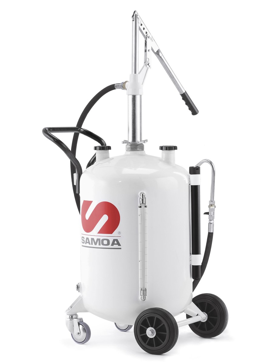Автономная установка с емкостью 70 л (17 галлонов США) с датчиком уровня. Установка включает насос с рычажным принципом действия и подающий шланг 1,5 м с клапаном и насадкой, изогнутой под углом 135º. Аналогично модели 326 010, но без счетчика.