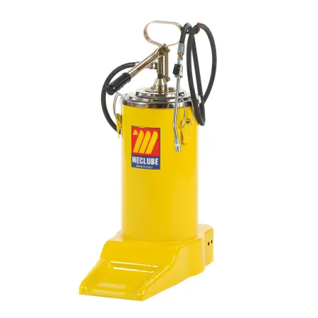 Ручной нагнетатель для смазки с емкостью 16 кг. Выходное давление 400 бар. Производительность 60 г/10 циклов. Оснащен раздаточным шлангом.