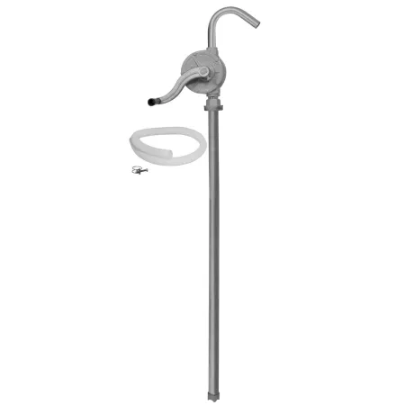 Ручной роторный насос для перекачки мало- и средневязких нефтепродуктов. Насоса выполнен из чугуна со стальным ротором. Производительность 0,3 л/об. В комплект входит бочковой коннектор, регулируемый по высоте, всасывающая трубка, состоящая из 3 частей, и подающий шланг 1 м.