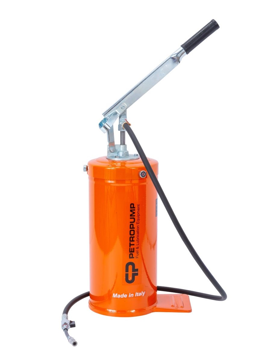 Мобильный солидолонагнетатель с ручным рычажным насосом и емкостью 12 кг. Предназначен для регулярного легкого и быстрого обсдуживания инструментов, машин и механизмов, используемых в сельском хозяйстве, автотранспортной и иных сферах. Полностью разработан, произведен и сертифицирован в Италии.