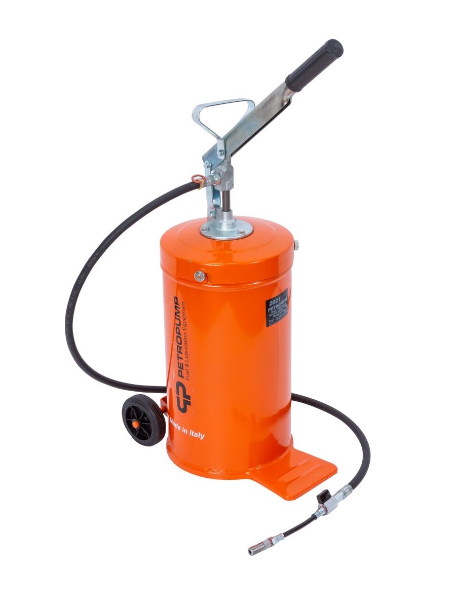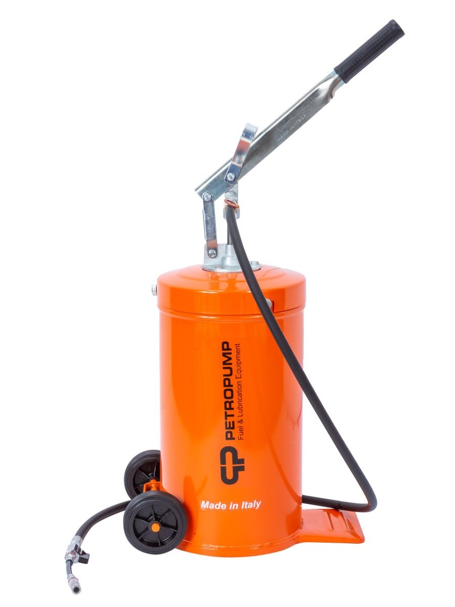 Мобильный солидолонагнетатель с ручным рычажным насосом и емкостью 16 кг. Предназначен для регулярного легкого и быстрого обслуживания инструментов, машин и механизмов, используемых в сельском хозяйстве, автотранспортной и иных сферах. Полностью разработан, произведен и сертифицирован в Италии.