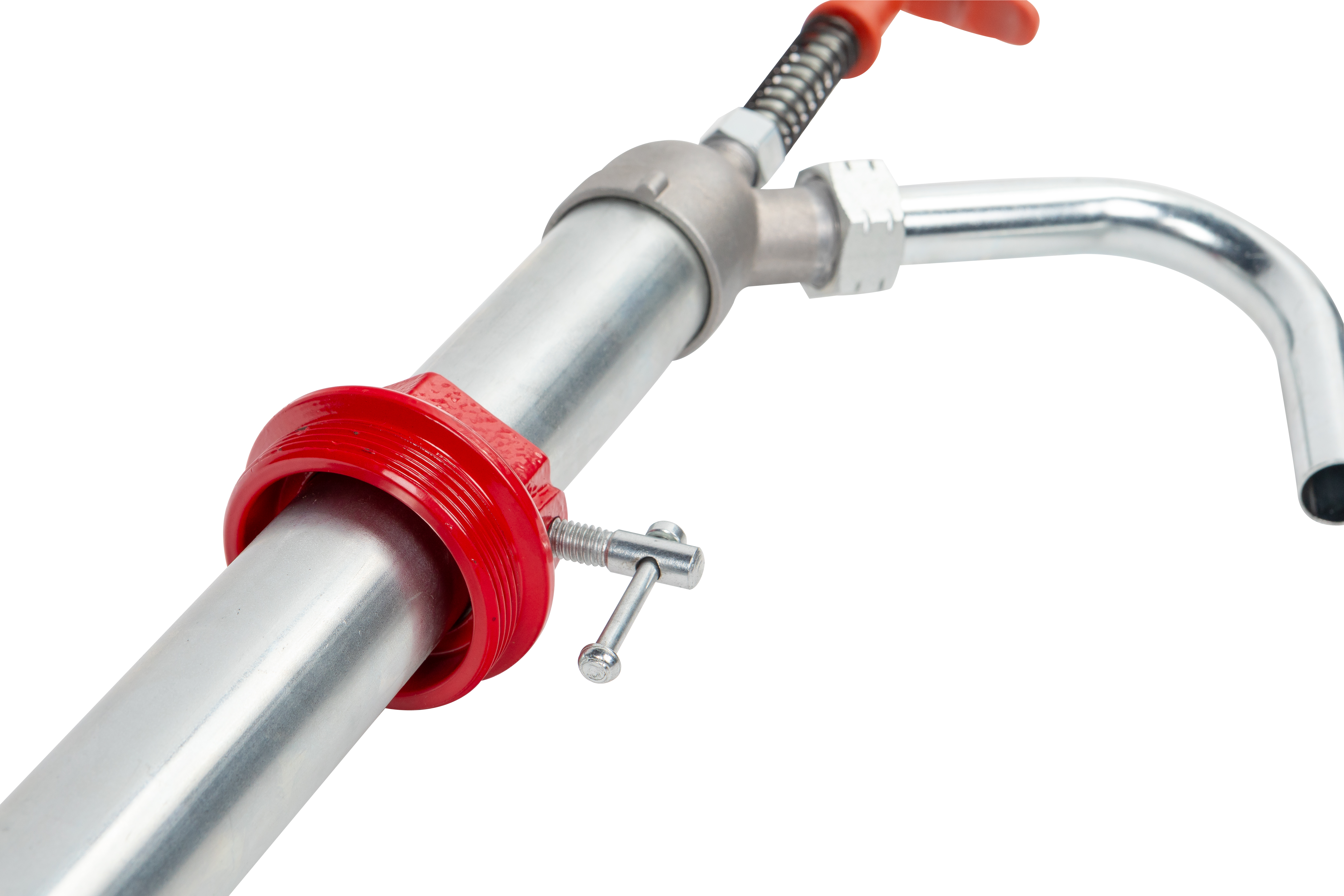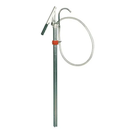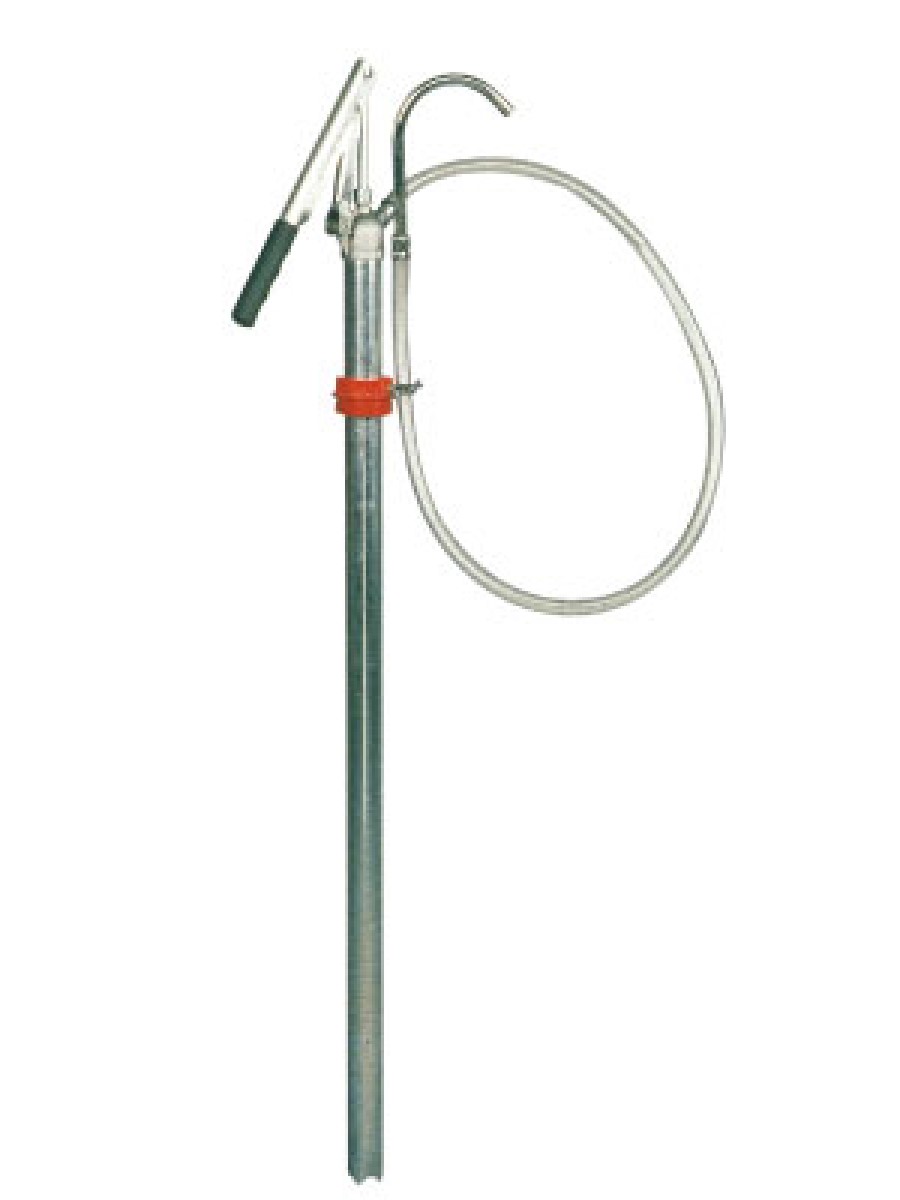 Рычажный насос для перекачки тяжелых масел. Производительность составляет до 75 мл/ход. Оснащен ПВХ шлангом 1,5 м с металлическим патрубком для эффективной раздачи. Подходит для установки на бочки объемом 50-205 л.
