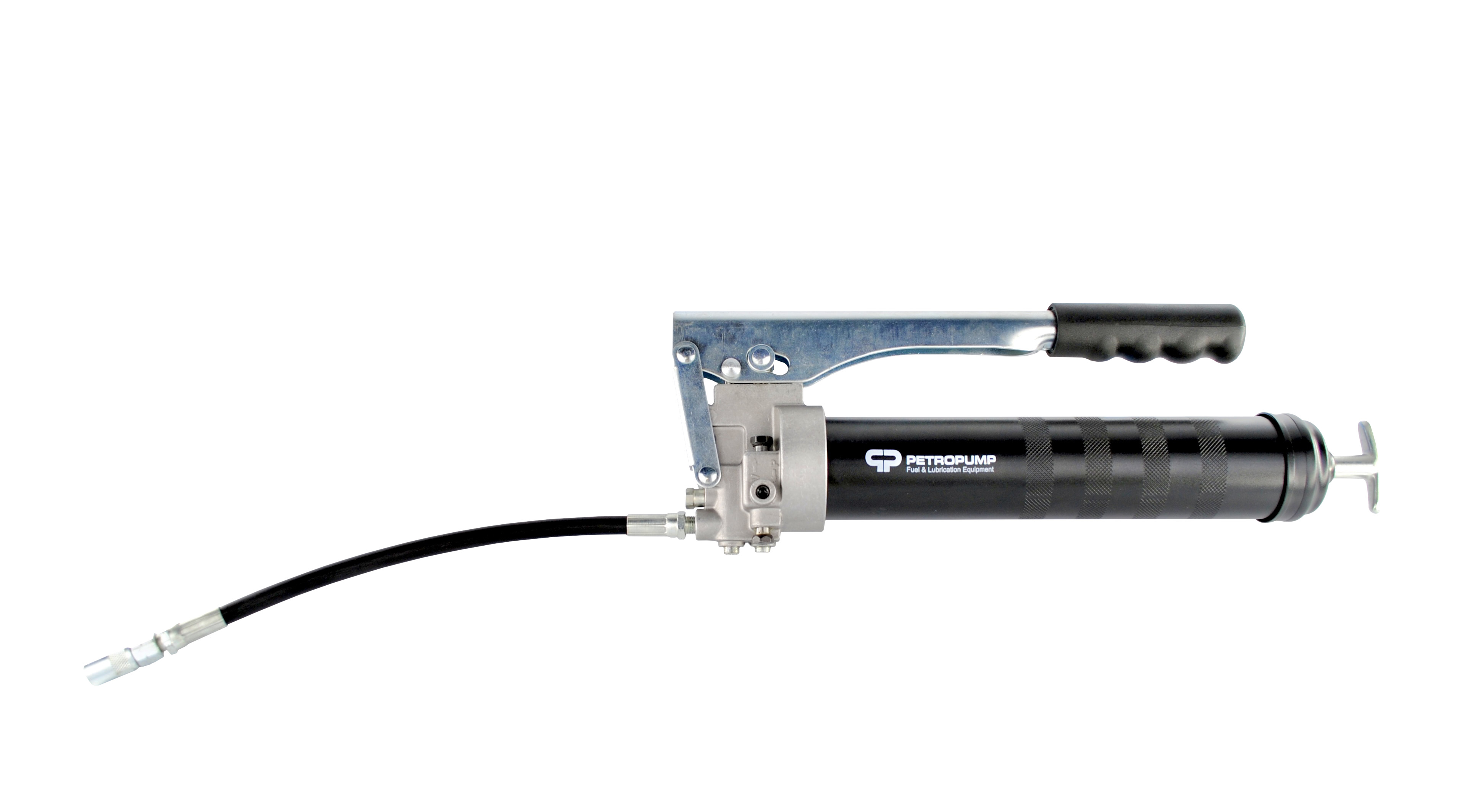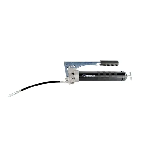 Шприц для смазки рычажного типа объемом 500 см3. Оснащен шлангом 300 мм х 11 мм и насадкой. Рабочее давление 130 бар. Производительность 3,2 г/ход. Соединение 1/8" BSPT. Заправка осуществляется с помощью заливочного насоса либо картриджа объемом 400 г. Оснащен сверхмощной пружиной и алюминиевой головкой для заправки и стравливания воздуха.