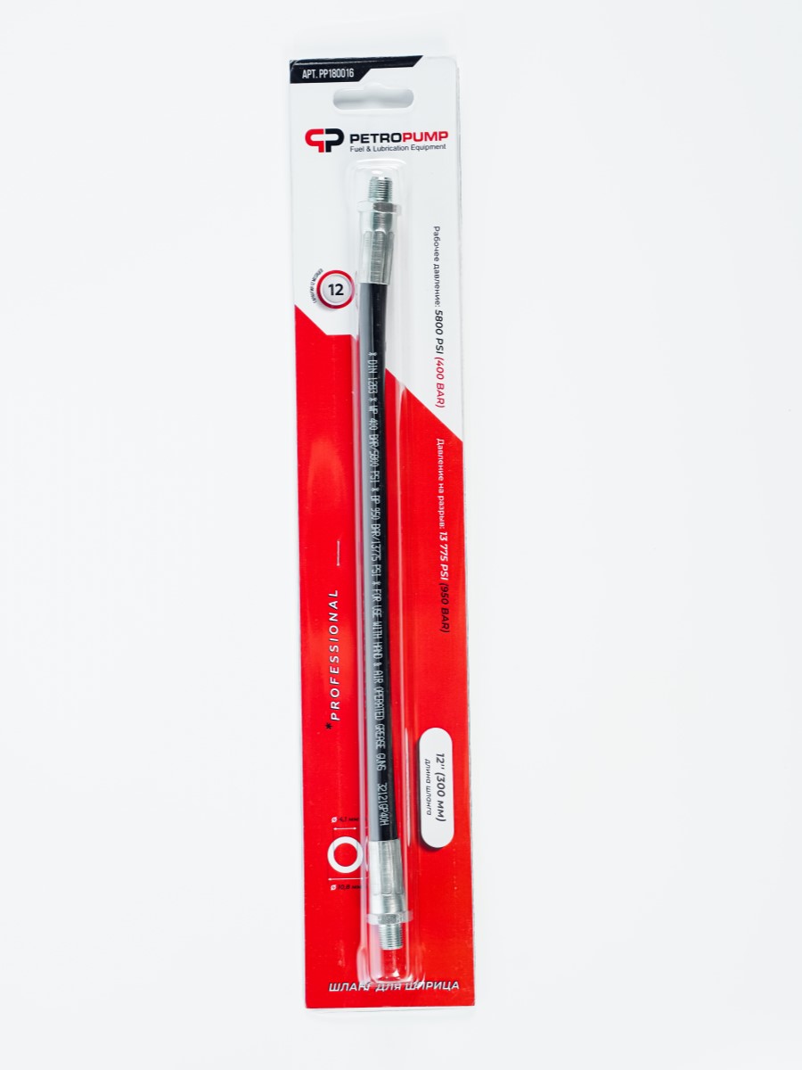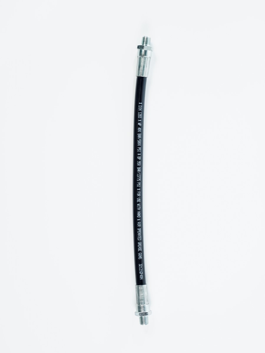 Гибкий шланг для консистентной смазки 300 мм х 1/8" BSPT. Рабочее давление 400 бар. Давление шланга на разрыв 950 бар.