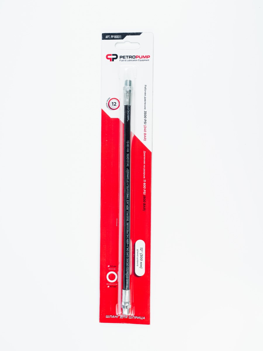 Гибкий шланг 300 мм х 1/8" BSPT. Рабочее давление 240 бар. Давление на разрыв 800 бар. Внутренний диаметр 3.6 мм, внешний - 8.5 мм