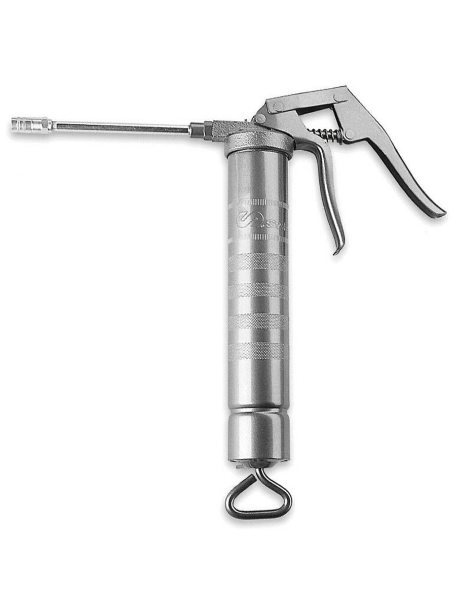 Насос для консистентной смазки объемом 500 см3 с пистолетной ручкой для смазки в труднодоступных точках. Три способа заправки: смазочные патроны 400 г (14 унций), всасывание из емкостей, заливочный насос. Сверхпрочная чугунная крышка с поршнем с точной посадкой. Максимальное рабочее давление: выше 250 бар (3650 фунт/кв. дюйм). Насос отдельно упакован поставляется с заливочным клапаном 128 003 и прямой трубой с четырехлепестковым гидравлическим соединителем (номер детали 710 710).