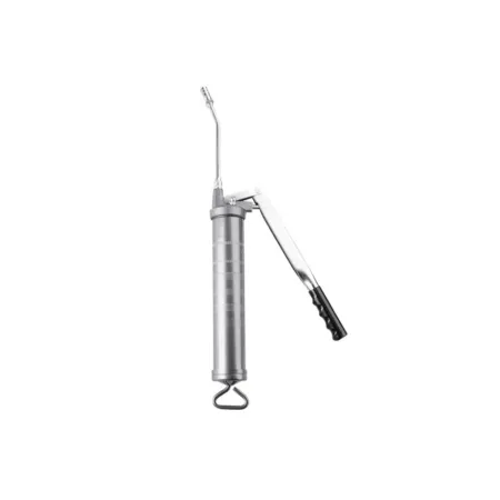 Рычажный насос для консистентной смазки объемом 500 см3 с переменным ходом. Высокопрочный рычажный насос для консистентной смазки из емкостей или смазочных патронов 400 г (14 унций).Насос с переменным ходом: высокое давление при коротком ходе, большой объем – при полном ходе. Сверхпрочная чугунная крышка с закаленным поршнем, воздуховыпускной клапан, заливочный ниппель, запорный клапан и крышка поршневого блока (снимаются для чистки) и вращающийся на 360ºвыпускная труба с четырехлепестковым гидравлическим соединителем.