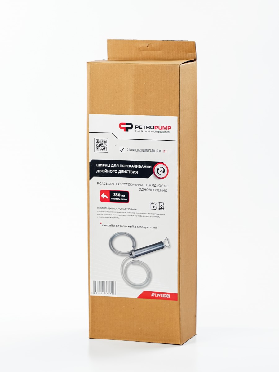 Шприц двойного действия для перекачивания масла, воды, топлива, антифриза. При движении поршня выкачивает жидкость и перекачивает в другую емкость. Производительность 350 мл. В комплекте: два виниловых рукава 1,2 м. Применяемые компоненты: алюминий, латунь, вайтон, ПВХ