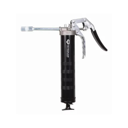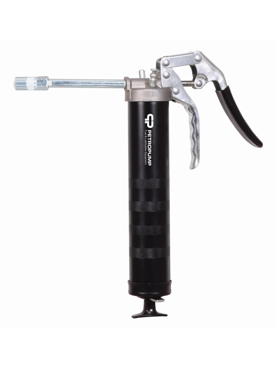 Шприц пистолетного типа для консистентной смазки объемом 500 см3. Предназначен для дозированной подачи смазки в рабочие узлы оборудования. Производительность составляет 0,5 г/ход. Резьба 1/8" BSPT. Рабочее давление 345 бар. Укомплектован клапаном стравливания воздуха, стальной трубкой 100 мм с 4-х лепестковым профессиональным наконечником