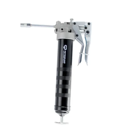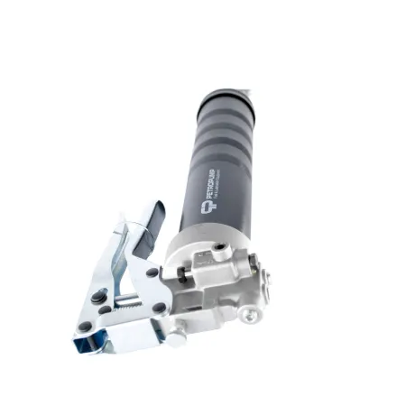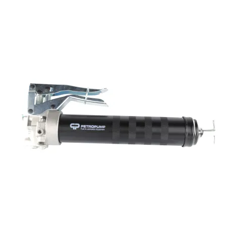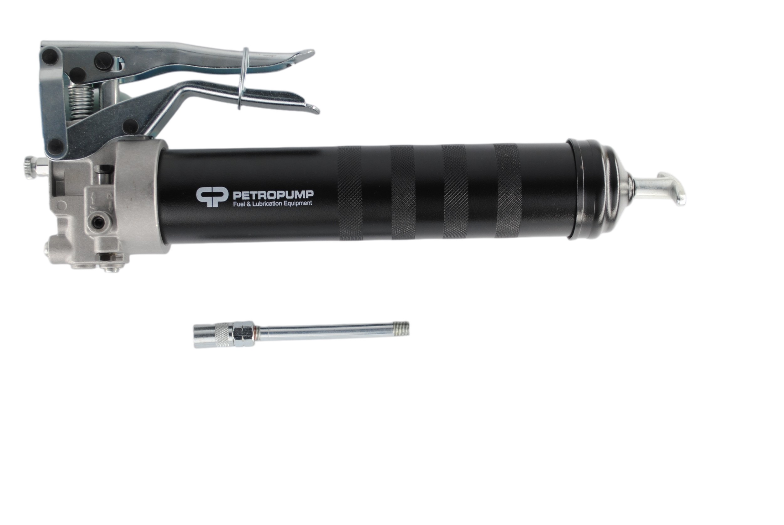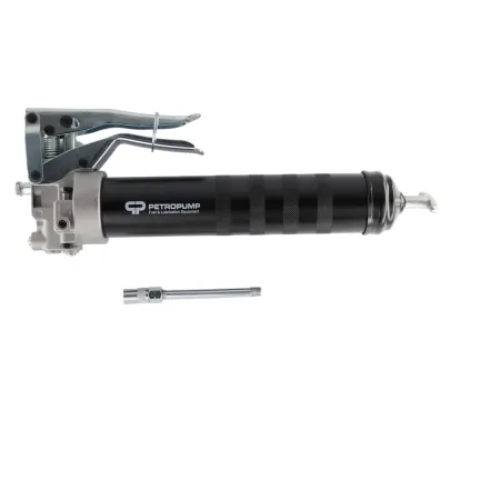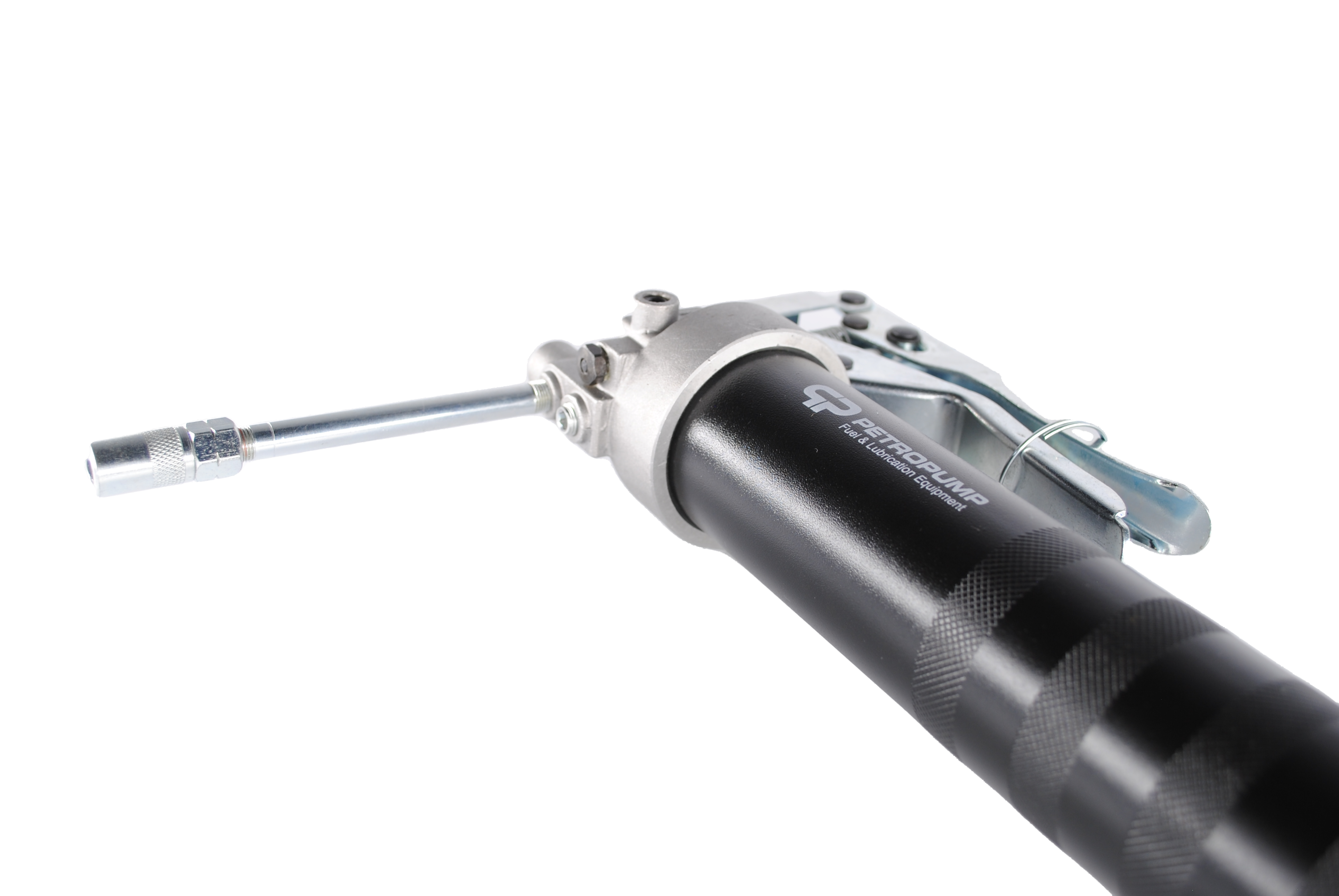 Шприц для смазки пистолетного типа объемом 500 см3. Оснащен стальной трубкой 100 мм и насадкой. Рабочее давление 130 бар. Производительность 1,3 г/ход. Соединение 1/8" BSPT. Заправка осуществляется с помощью заливочного насоса либо картриджа объемом 400 г. Оснащен сверхмощной пружиной и алюминиевой головкой для заправки и стравливания воздуха.