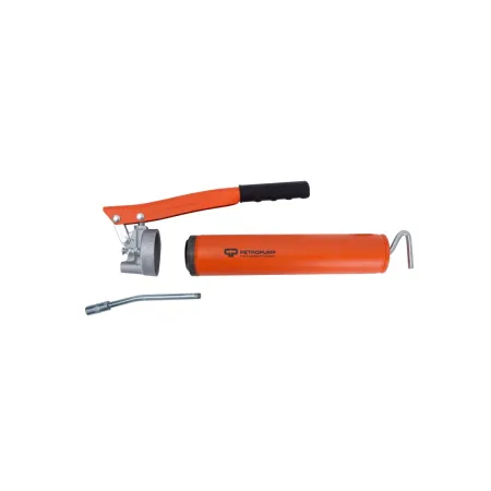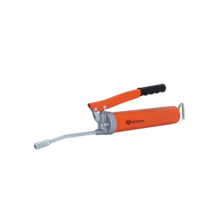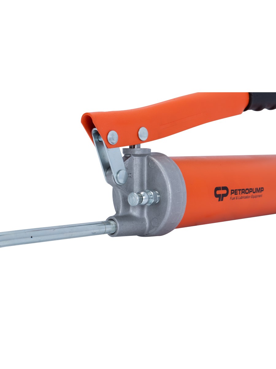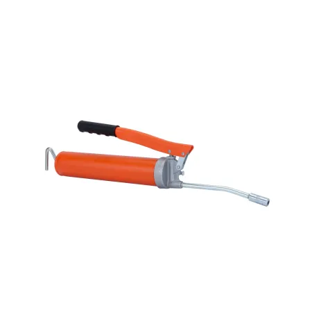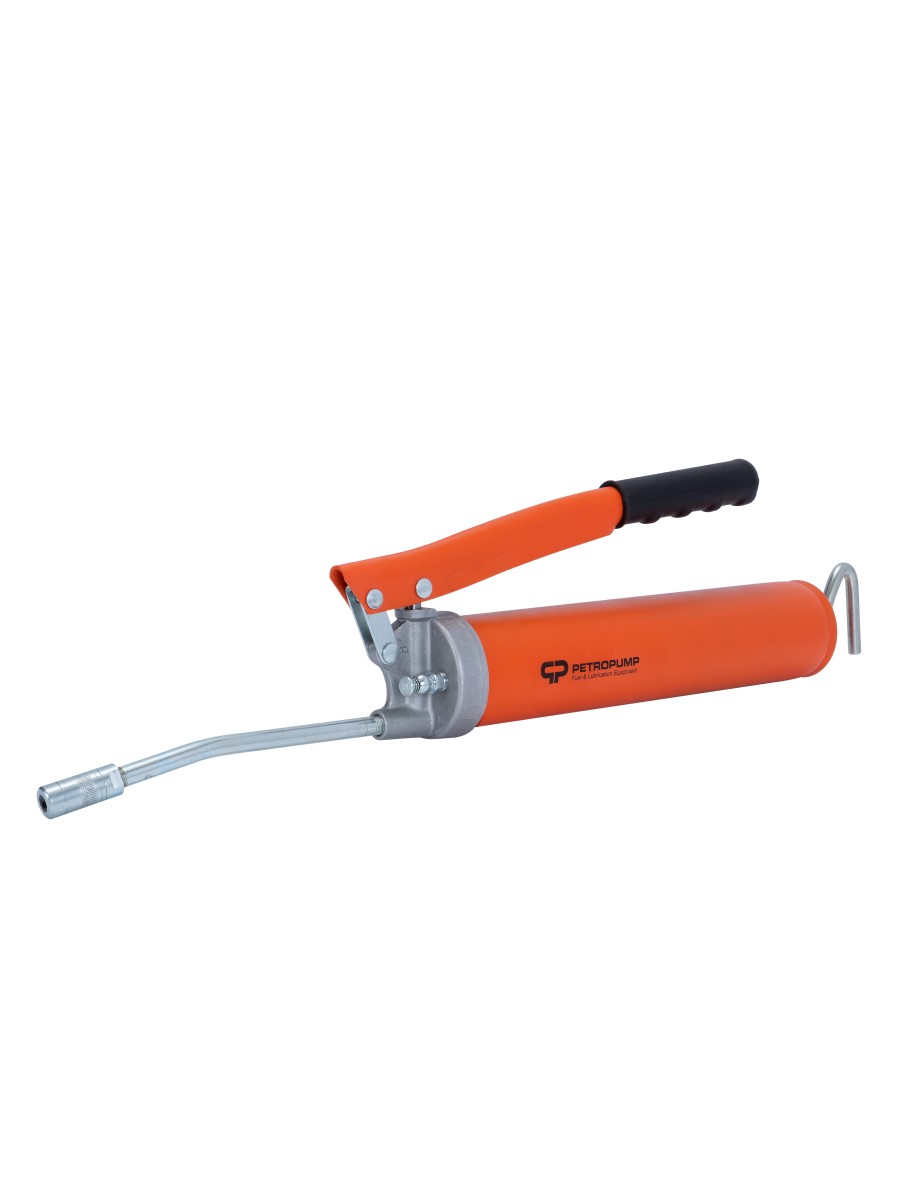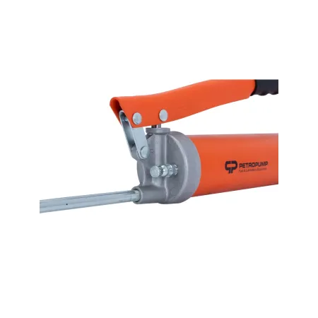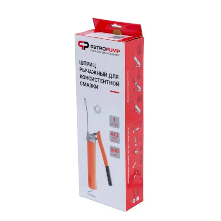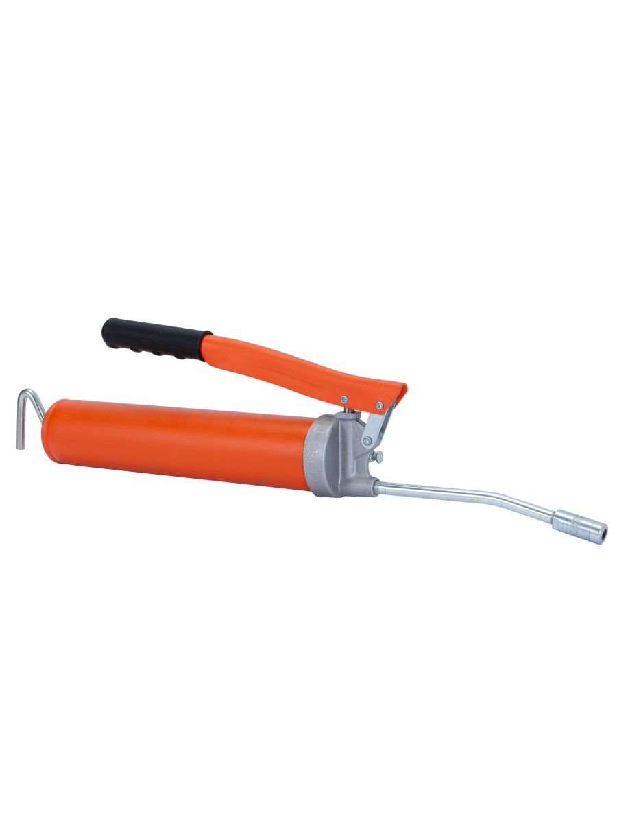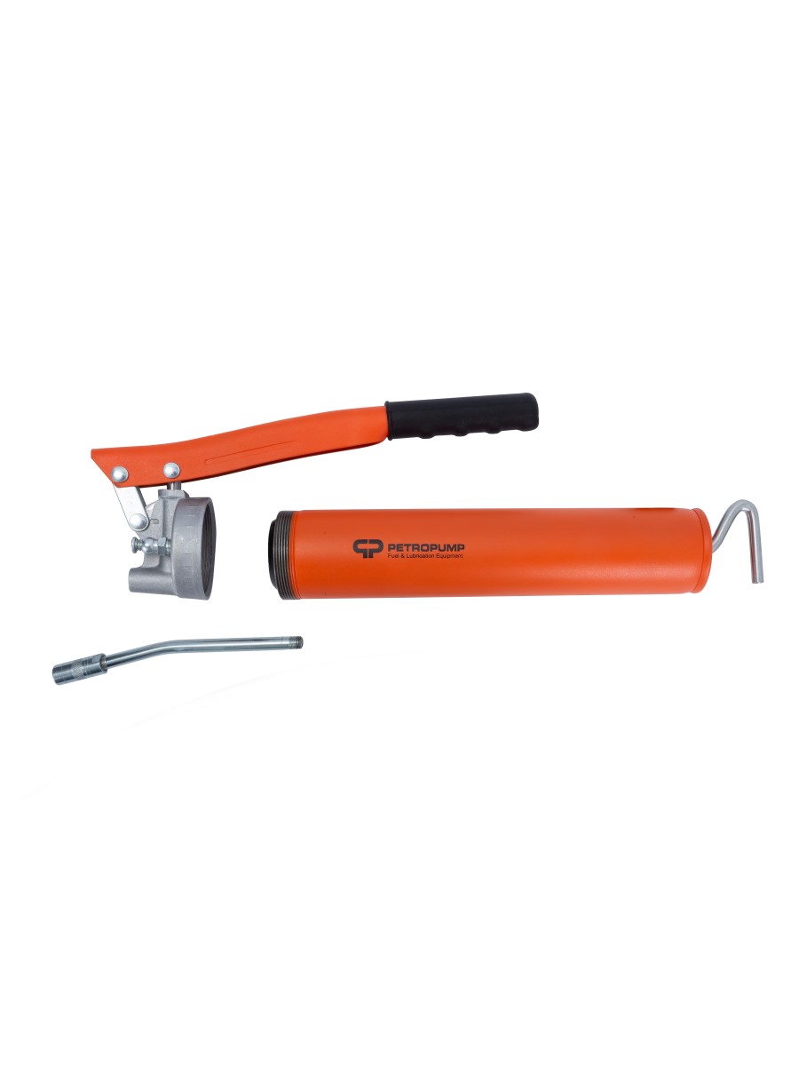 Алюминиевая головка имеет клапан для загрузки смазки и стравливания воздуха. Удобная в использовании мягкая резиновая рукоятка. Высокопрочное покрытие. Поставляется с 150 мм стальной трубкой с насадкой. Производительность 1 г/ход. Объем шприца составляет 500 см3. Предназначен для использования со смазкой до NLGI 2