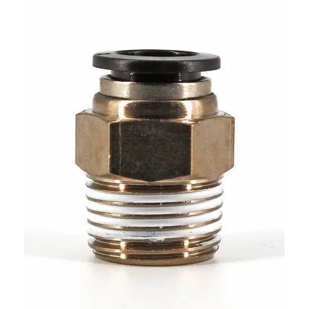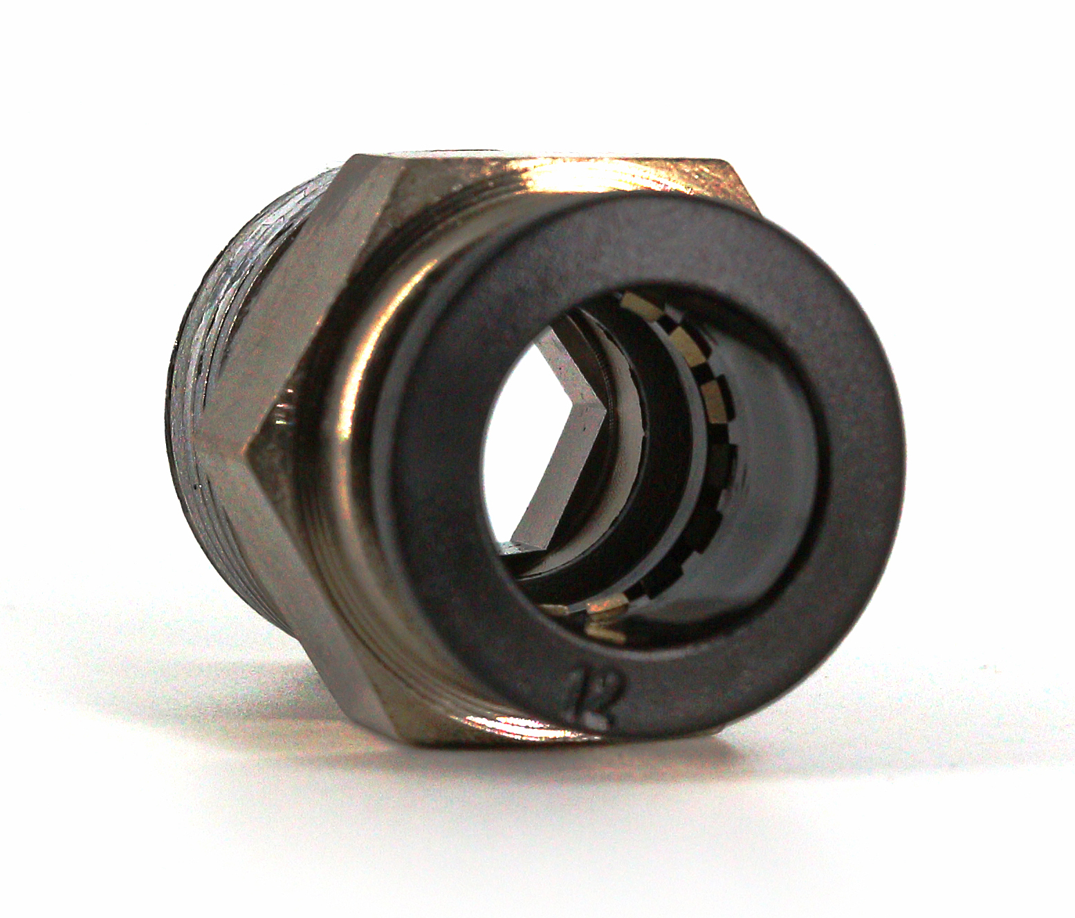 Форма фитинга: штуцер прямой с нар. резьбой • Подключение: R3/8-12 мм • Материал корпуса: латунь никелированная • Цвет: черный