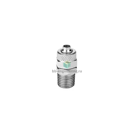 Форма фитинга: штуцер прямой с нар. резьбой • Подключение: R3/8-8/6 мм • Материал корпуса: латунь никелированная