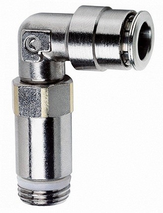 Форма фитинга: штуцер угловой удлинённый с нар. резьбой • Подключение: G1/8-6 мм • Материал корпуса: латунь никелированная