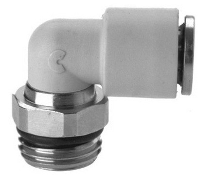 Форма фитинга: штуцер угловой с нар. резьбой поворотный • Подключение: G3/8-8 мм • Материал корпуса: полибутилентерефталат (PBT)