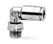 Форма фитинга: штуцер угловой с нар. резьбой поворотный • Подключение: G1/4-10 мм • Материал корпуса: латунь никелированная