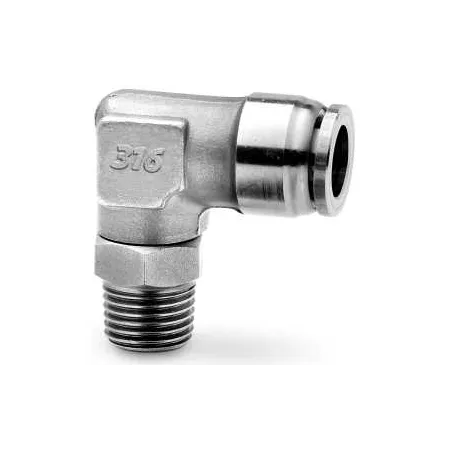 Форма фитинга: штуцер угловой с нар. резьбой поворотный • Подключение: R1/4-4 мм • Материал корпуса: сталь нержавеющая AISI 316L