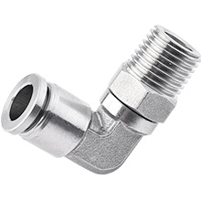 Форма фитинга: штуцер угловой с нар. резьбой поворотный • Подключение: R1/4-10 мм • Материал корпуса: сталь нержавеющая AISI 316