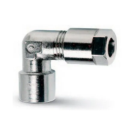 Форма фитинга: штуцер угловой с внутр. резьбой • Подключение: G1/4-6 мм • Материал корпуса: латунь никелированная