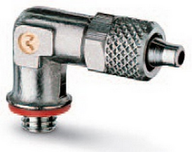 Форма фитинга: штуцер угловой с нар. резьбой • Подключение: M5-5/3 мм • Материал корпуса: латунь никелированная