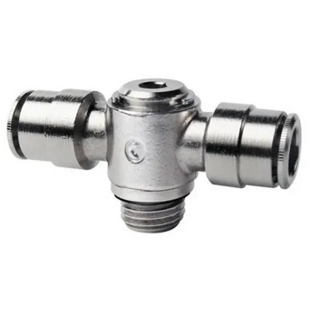Форма фитинга: тройник T-образный с серьгой с нар. резьбой поворотный • Подключение: G1/8-8 мм • Материал корпуса: латунь никелированная