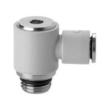 Форма фитинга: штуцер угловой с серьгой с нар. резьбой поворотный • Подключение: G3/8-10 мм • Материал корпуса: полибутилентерефталат (PBT)