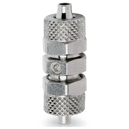 Форма фитинга: соединитель прямой • Подключение: 10/8-6/4 мм • Материал корпуса: латунь никелированная