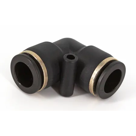 Форма фитинга: соединитель угловой • Подключение: 10 мм • Материал корпуса: полибутилентерефталат (PBT) • Цвет: черный