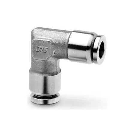 Форма фитинга: соединитель угловой • Подключение: 6 мм • Материал корпуса: сталь нержавеющая AISI 316L