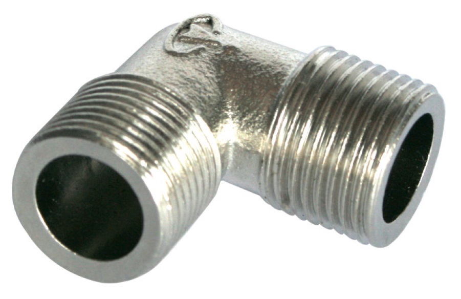 Форма фитинга: соединитель угловой с нар. резьбой • Подключение: G3/8 • Материал корпуса: латунь никелированная
