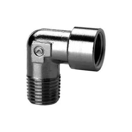 Форма фитинга: соединитель угловой с внутр.-нар. резьбой • Подключение: R1 • Материал корпуса: латунь никелированная