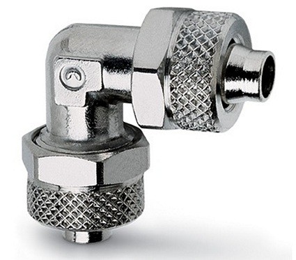Форма фитинга: соединитель угловой • Подключение: 6/4 мм • Материал корпуса: латунь никелированная