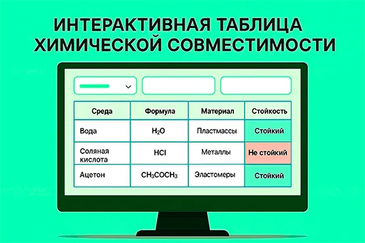Этот инструмент предназначен для подбора подходящих материалов и трубок с учётом их устойчивости к различным химическим средам. Введя параметры вашей рабочей среды, вы сможете быстро определить, какие материалы подходят для конкретного применения, а какие могут быть разрушены или деформированы под воздействием агрессивных веществ.