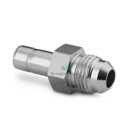 Переходник прямой втулка‑развальцовка Swagelok SS‑12‑TA‑1‑12AN предназначен для перехода между обжимным трубным соединением и развальцованным фланцевым/конусным соединением 3/4″. Работает по принципу двухобжимной системы: при затяжке гайки обжимные кольца втулки захватывают трубу и формируют герметичное металлическое уплотнение, контактирующее с конической поверхностью 37° (угол конуса фитинга 37° (74°)). Решает задачи герметичного перехода сред (газы, гидравлические жидкости, агрессивные среды) в системах по стандарту SAE J514 (ISO 8434‑2).