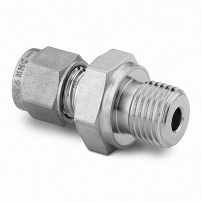 Трубный обжимной фитинг Swagelok из нерж. стали, соединитель с наруж. резьбой, наруж. диам. трубки 16 мм – наруж. цилиндрическая резьба ISO 1/2 дюймаХарактеристики SS-16M0-1-8RP