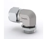 Угловой поворотный штуцер обжимного типа Swagelok с нарезной частью UNF 1 5/8"-12 и подсоединением трубки 1 1/4" предназначен для выполнения герметичных переходов между резьбовыми линиями и трубопроводами в системах измерения, гидравлики и технологических установках. Конструктивно продукт обеспечивает поворотное сочленение для удобства монтажа и точной ориентации трубки; уплотнение резьбы реализовано выступающим O‑ring, а герметизация трубки — через двухкольцевую обжимную систему (две обжимные гильзы и гайка), что обеспечивает высокую прочность соединения и стойкость к циклическим нагрузкам.