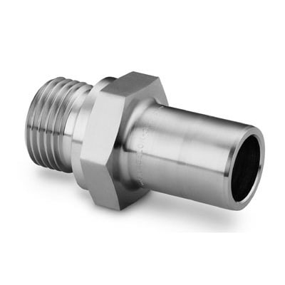 Трубный обжимной фитинг Swagelok из нерж. стали, трубный переходник с наруж. резьбой, наруж. диам. трубки 1/4 дюйма – наруж. цилиндрическая резьба ISO 1/8 дюйма, прямой буртикХарактеристики SS-4-TA-1-2RS