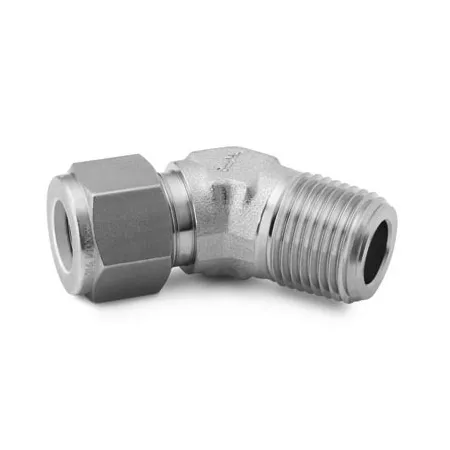 Трубный обжимной фитинг Swagelok из нерж. стали, отвод 45° с наруж. резьбой, наруж. диам. трубки 1/4 дюйма – наруж. резьба NPT 1/4 дюймаХарактеристики SS-400-5-4