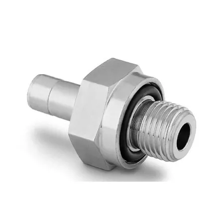 Переходник прямой втулочный с наружной резьбой UNF 9/16″-18 → втулка 3/8″ предназначен для соединения трубных линий приборного и технологического назначения: систем КИПиА, аналитики, газовых и жидкостных линий высокого давления. Работает по принципу обжима трубки двумя обжимными кольцами (передняя и задняя втулки) и гайкой — при затяжке образуется герметичное уплотнение металлом о металл; дополнительное торцевое уплотнение обеспечивается утопленным O‑ring в резьбовой части для предотвращения утечки по резьбе и улучшения повторяемости соединения.
